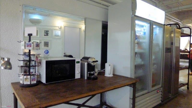 If you're concerned about food storage, there's also a common kitchen with refrigerator, toaster, and microwave oven.